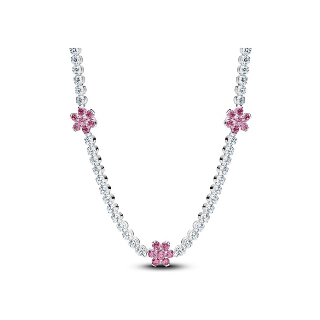 Pandora Timeless Collier Pandora Timeless Rivière Fleurs Roses en argent et oxydes de zirconium, 40 cm