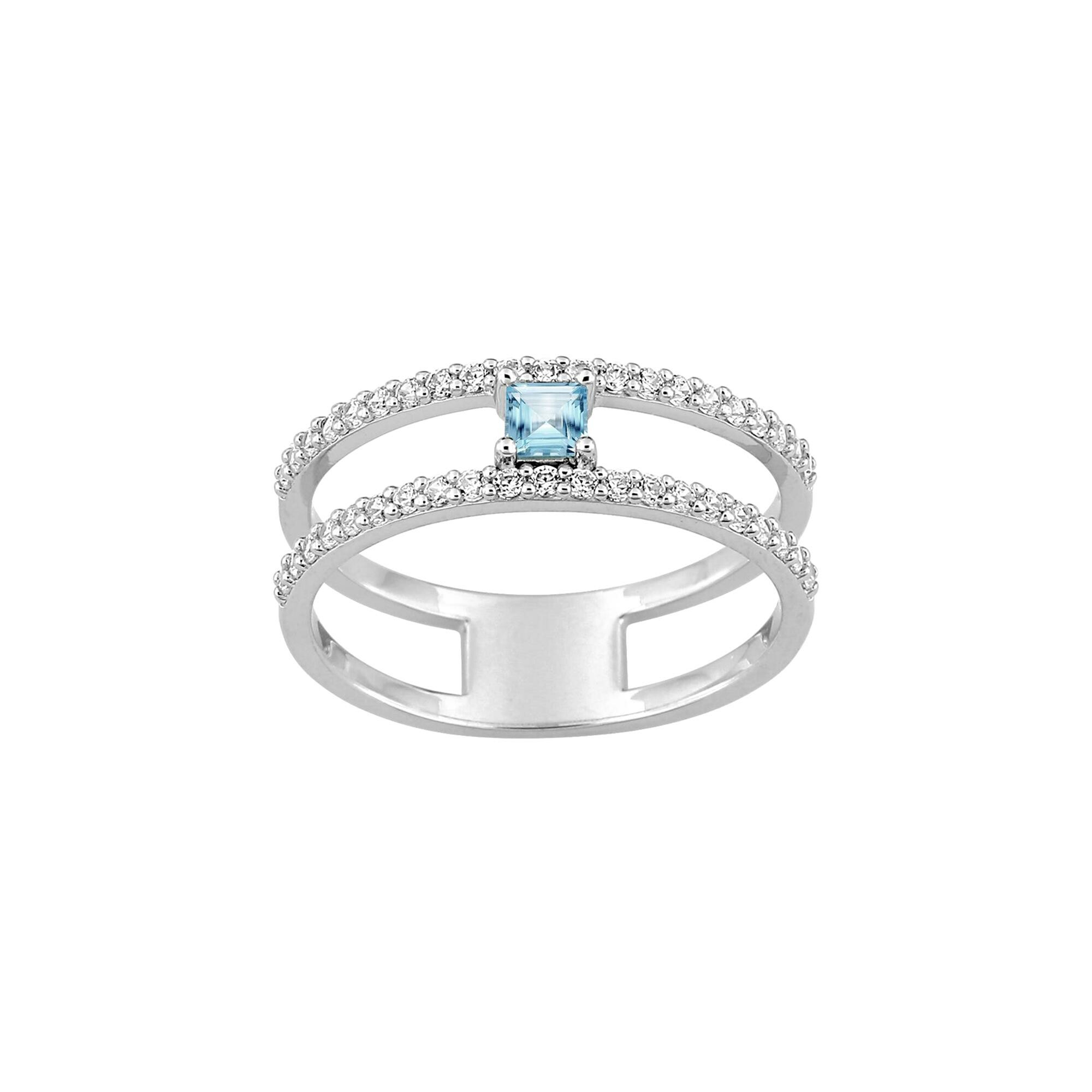 Bague en argent rhodié et oxyde de zirconium bleu ciel et blanc