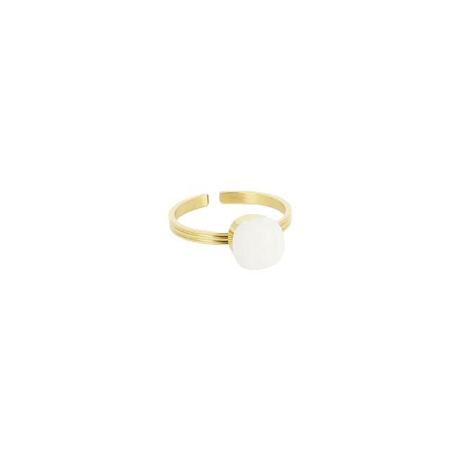 Bague Zag en acier doré et agate blanche, taille ajustable