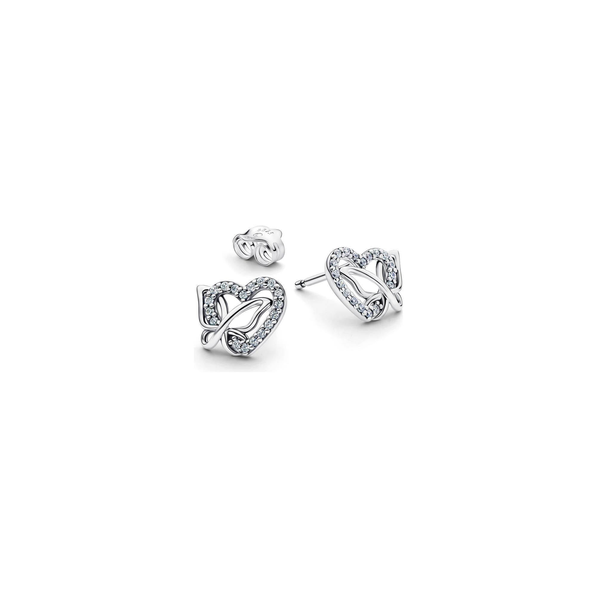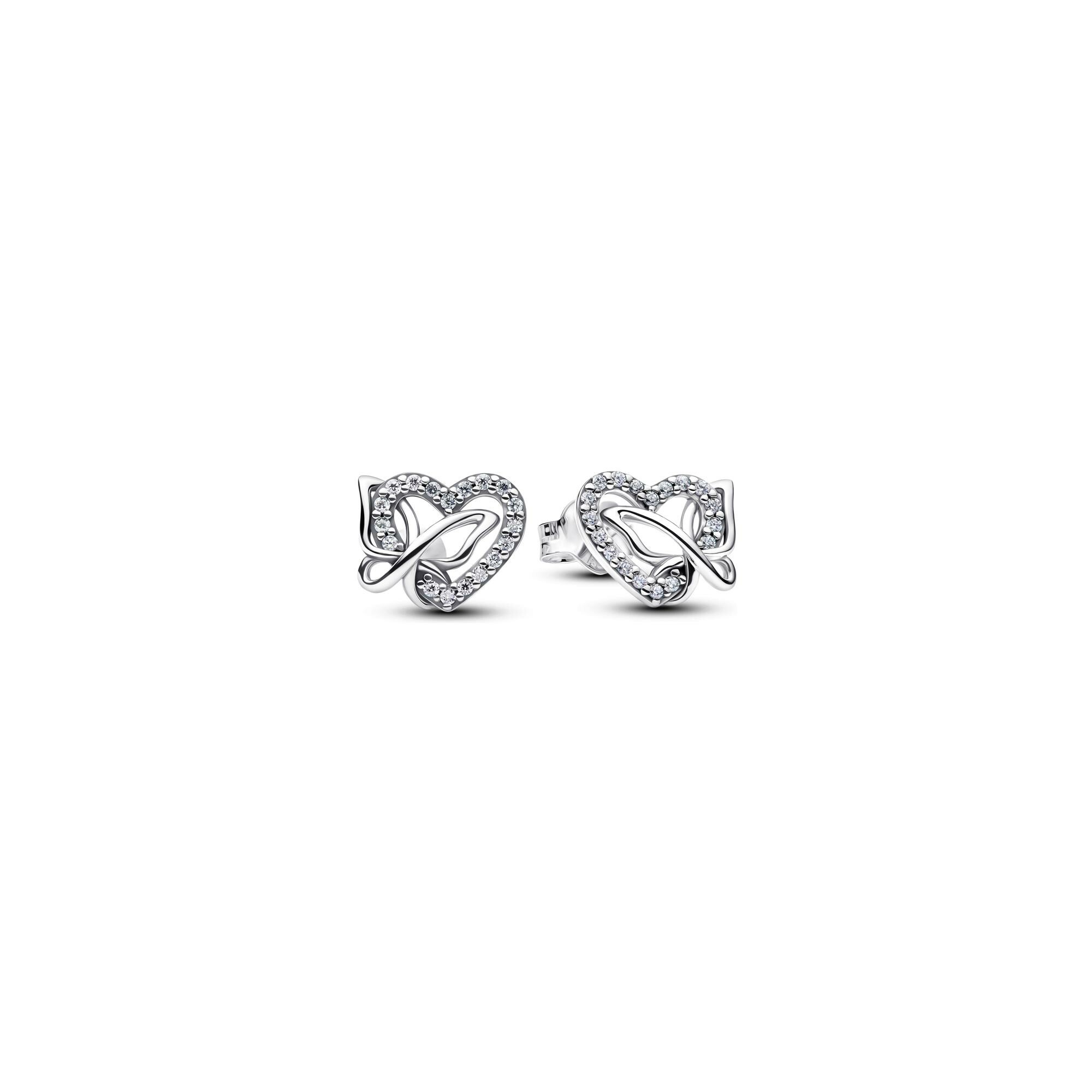 Pandora Moments Boucles d'oreilles Pandora Moments Cœur et Papillon Entrelacés en argent et oxydes de zirconium