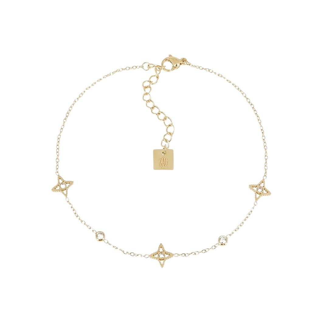Chaîne de cheville Zag Manhattan en acier doré et oxyde de zirconium