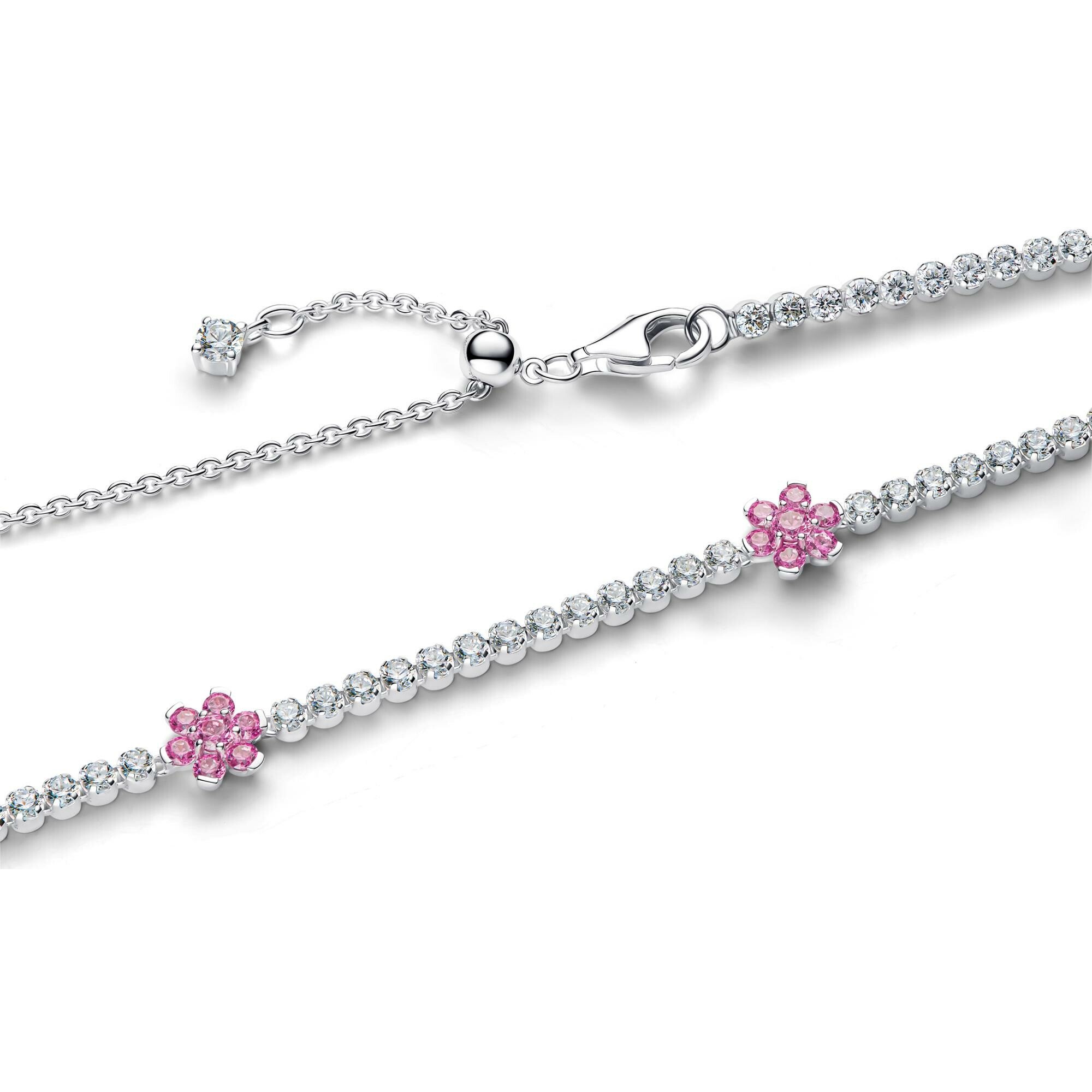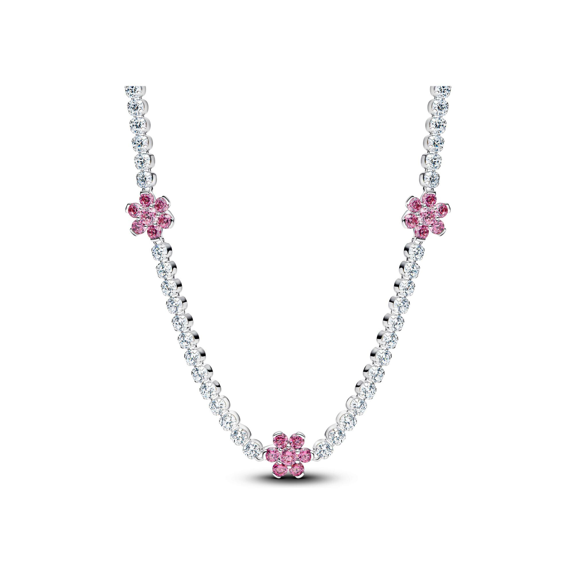 Pandora Timeless Collier Pandora Timeless Rivière Fleurs Roses en argent et oxydes de zirconium, 40 cm